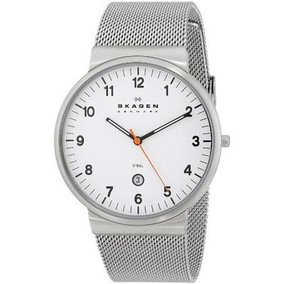 这款诗格恩Skagen男式 SKW6025 石英手表,采用石英机芯,走时精确。特质不锈钢表壳耐磨富有质感,金属不锈钢表带柔软质感,舒适透气,简约时尚的风格,低调中透露出奢侈的气息,6点钟方向有日期显示,采用的防刮耐磨矿物水晶表镜,即时长时间佩戴也不会刮花,经久耐用!这款男士腕表盘直径40mm,厚度8mm。大小适中,绝大部分男士都可以驾驭,30米生活防水还是比较靠谱的。流线型设计感,精巧雅致浑然天成,日常或者正式场合佩戴都很合适。