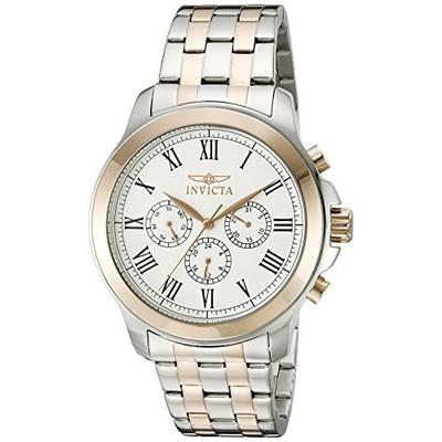 这款因维塔克 Invicta Men's 21660 Specialty Analog Display Swiss Quartz Two Tone Watch 男士三眼计时石英表,采用了银色与金色搭配的不锈钢圆形表盘和不锈钢表带,外形具有一股浓浓的商务休闲范儿,。表盘三眼计时,分别是24小时、日期以及星期功能,使用防划耐磨的矿物质玻璃镜面,100米防水功效,可以戴着洗澡或者游泳,内置一颗精准的石英机芯,36mm的表盘直径,穿戴舒适不厚重。是一款不错的商务休闲款手表,款式靓丽时尚百搭!