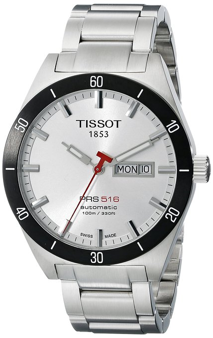 这款天梭Tissot男式T0444302103100 PRS 516 Day-Date Calendar手表,采用ETA2836-2石英机芯,确保了时间的精准,精钢表壳尺寸42mm,厚度11mm,背透表底,蓝宝石水晶玻璃表镜,银色表盘,银色钢链表带,折叠双按扣表扣,防水深度100米还是很靠谱的,应付日常生活不在话下。