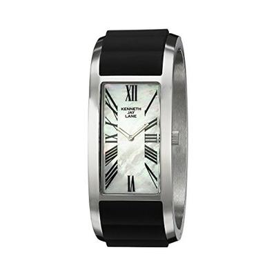 肯尼思·杰·莱恩 Kenneth Jay Lane Women's KJLANE-5402 Breakers Analog Display Japanese Quartz Two Tone Watch 女士时装手表,这款手表才用了手镯外形,外形颇为抢眼,配合各类时尚服饰,能够胜任各式场合,低调又尊贵,是简约人士的完美之选。采用独特优雅的手镯款式,极简式设计。日本石英机芯,不锈钢表壳以及黑色手镯式表带,搭配珍珠贝母表盘,高贵而不失温婉圆润。罗马数字刻度,更显艺术设计感,戴在手上不仅是手表,亦是饰品,仿佛手镯一般,同时还具有30米的生活防水,可以应付日常生活中下雨或者溅水等情况的发生!