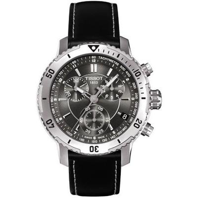 天梭 Tissot Men's T0674171605100 PRS 200 Black Chronograph Dial Watch 瑞士制造三眼计时多功能男表,天梭PRS200系列拥有时尚的外观,同时兼具精确、坚固和运动感等优点,防水20个大气压(200米/660英尺),其名字也由此而来。该系列手表性价比很高,又不失典雅,因此吸引了众多手表爱好者的目光。高科技技术与迷人的外观相辅相成。许多设计特性的灵感都来自于潜水,包括安全单向表圈、荧光标志以及配备安全表扣的表带。性能与外观都采用了相同的高标准,并有多种材料和颜色搭配可供选择。具体到这款手表,内置一颗石英机芯,三眼计时,精钢表壳,4点处有日历功能,200米防水十分强大,戴着游泳毫无压力,整体造型很man很适合型男佩戴!