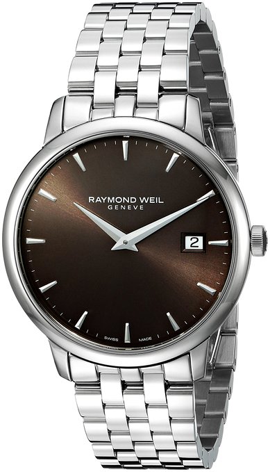 这款蕾蒙威 Raymond Weil 5488-ST-70001 男士石英手表内置优质石英机芯,保证了时间的精确,外观采用银色全钢表壳表链设计,沉稳优雅,气质非凡,防划痕抗反射蓝宝石玻璃表镜下为棕色表盘,表盘镶有银色全时刻度,3点钟方向为日历显示窗,表盘直径39mm,防水深度50m。