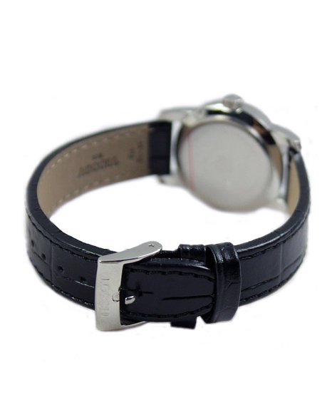 这款天梭女士 T0332101605300 Classic 经典石英手表内置优质瑞士石英机芯,保证了时间的精确,外观采用黑色真皮表带搭配银色不锈钢表壳设计,经典优雅,气质非凡,防划痕抗反射蓝宝石玻璃表镜下为黑色表盘,表盘镶有银色罗马数字刻度,3点钟方向为日历显示窗,银色时分秒指针,表盘直径28mm,防水深度30m。