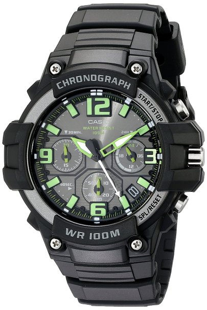 这款卡西欧Casio MCW-100H-3AVCF Heavy Duty超薄太阳能多功能表,内置太阳能电池,无需额外能源,100米防水,46.2mm表径,非常大的表盘,适合粗手腕的纯爷们真汉子,指针显示,三眼计时,橡胶表带表盘耐摔耐磨!