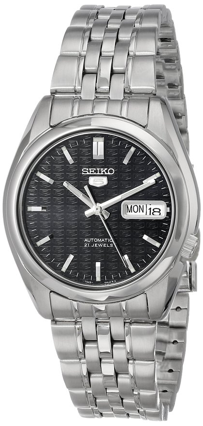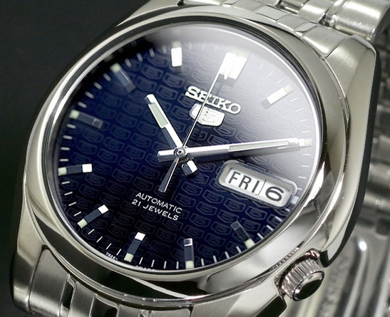 这款SEIKO 精工 SNK357 精工5号 男款自动机械表,采用21石自动机械机芯,表被镂空透视,尽显工业设计之美。矿物水晶表镜,不锈钢表壳表带,深蓝色表盘带有品牌LOGO浮雕,搭配银色的指针刻度,简洁大方。表盘直径37mm,厚度11mm,3点钟日期星期显示,还有30米生活防水。