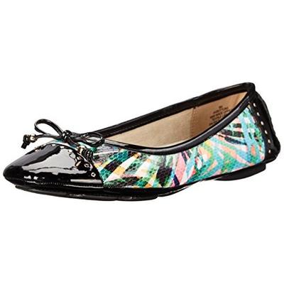 安妮·克莱因 Anne Klein Sport Women's Buttons Ballet Flat 女士时尚休闲平底鞋,采用蛇纹纹理人造材质鞋面,舒适透气,鞋面前端还设计有精致的蝴蝶结扣,搭配鞋头和鞋后跟上的一圈Blingbling铆钉,增添了优雅气息,简单的一脚蹬设计,穿脱都非常方便,柔软的合成材质衬里及鞋垫能够为该款更添舒适性和透气感,耐磨耐穿的橡胶大底,能够更好地陪伴你走过岁月中每一段路程。