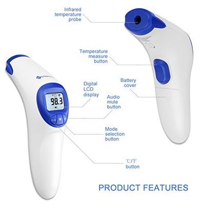 Etekcity Non-Contact Infrared Thermometer: Dual Forehead and Surface Digital Instant IR Temperature Analysis 非接触式红外耳温仪,这是一款有极高性价比的非接触手持式红外耳温仪,可以避免消毒不干净造成的感染。可以精确的测量人体体温,在体温超过37.5摄氏度时,会发出报警。能够存储20个测量结果,轻松追踪健康。