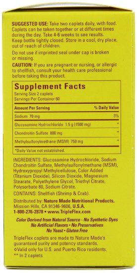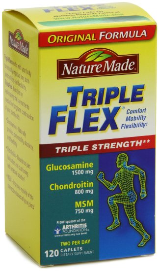 Nature Made TripleFlex三倍维骨力,又被称为关节宝,联合三种有效成分增强关节润滑和弹性,包括盐酸氨基葡萄糖1500 mg、软骨素800 mg和MSM750 mg(海洋中衍生的天然有机硫同化物)。可有效减轻关节疼痛、肿胀,增强关节活动功能,使关节更舒适更年轻。适合老年人、骨关节炎患者、关节软骨伤患者、骨折患者等作为膳食补充。
