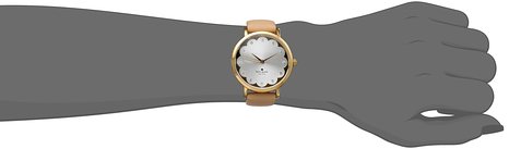 kate spade Scalloped Metro 女士时尚石英手表内置精确石英机芯,外观采用裸色真皮表带搭配金色不锈钢表壳设计,时尚不失高贵气息,防刮耐磨矿物玻璃表镜下为银色表盘,表盘镶有水晶全时刻度,金色时分秒指针,表盘直径34mm,防水深度3m。