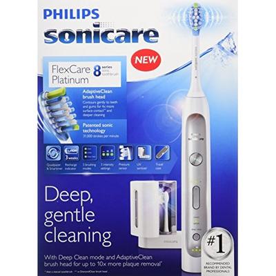 飞利浦 Philips Sonicare Flexcare PlatinumHX9172/10 白金超效充电式牙刷,具有9种刷牙体验,采用直觉的压力感应器和先进的刷头技术,完全超越传统的洁牙方式,卓越地去除牙菌斑,改善牙龈健康。可让您选择 3 种清洁模式(洁净、美白或牙龈保健)和 3 种强度设置(低、中或高),为您打造度身订做的完美刷牙体验。 具有可进行集中清洁的特殊牙龈护理模式,有助于减少牙龈出血和发炎,临床试验证明,仅需 2 周便可改善牙龈健康。与传统的电动牙刷不同,Sonicare 具有专利声波技术。Sonicare 独特的流动洁力可强力清洁牙缝,轻柔、有效地去除齿间和牙龈周围的牙菌斑。可深入牙缝,高效去除牙菌斑。临床试验证明,与手动牙刷相比,其可以清除齿间 7 倍以上的牙菌斑。
