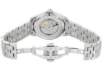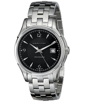 这款Hamilton Men's H32515135 Jazzmaster Viewmatic Black Guilloche Dial Watch汉密尔顿男士机械腕表属于美式经典的爵士系列,外观典雅而大气,这款表采用采用经典的瑞士自动上链ETA 2824-2机芯,有25颗红宝石,动力储备38小时,振频28800次/时,银色不锈钢表壳加表带,搭配黑色表盘显得低调华丽。这款表的背后采用通透的设计,能够看到表内部的运动状况,突出了机械运动的美感。这款表的表径为40mm,厚度8mm,50m的生活防水应付日常生活足够了。
