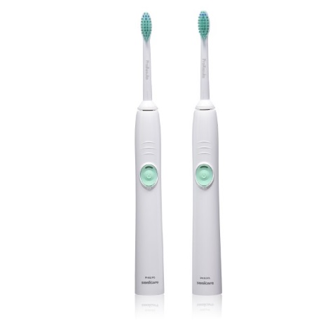 飞利浦 Philips Sonicare Easy Clean Sonic Electric Toothbrush 2 Pack, HX6552/75 声波电动牙刷 2个装,采用Sonicare声波震动清洁专利技术,通过每分钟31000次的摆动,刷头左右摆动距离是手动的6倍,帮助牙齿充分清洁。Smartimer两分钟智能计时器,每隔30秒提醒更换刷牙部位,有助于确保准确的刷牙时间。内置锂电池,充满电可用约2个星期,110-220V全球通用电压。套装包括:2个牙刷,2个充电器,2个旅行盒,2个牙刷头。