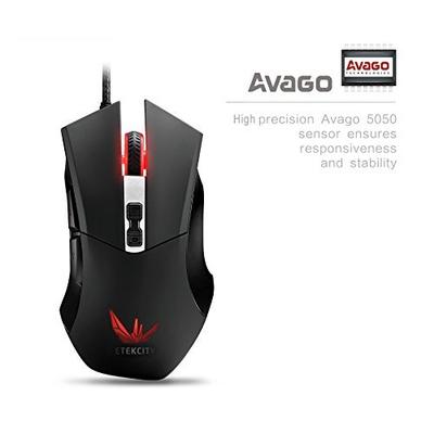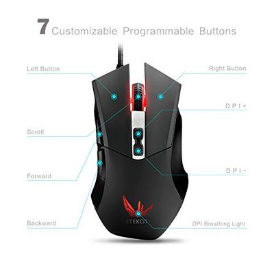 Etekcity Scroll X1: 2400 DPI Programmable Wired USB Gaming Mouse, Omron Micro Switches 有线光电鼠标(带7个可编程按键,采用欧姆龙高品质微动),这款鼠标可以实现快速按键切换800,1600和2400DPI,不同DPI设定会有不同颜色的灯光,人体工学设计,舒适体验,长期使用也没有问题。高精度Avago 5050传感器保证了相应速度和稳定性。欧姆龙卫东开关,提供快速精准的点击。