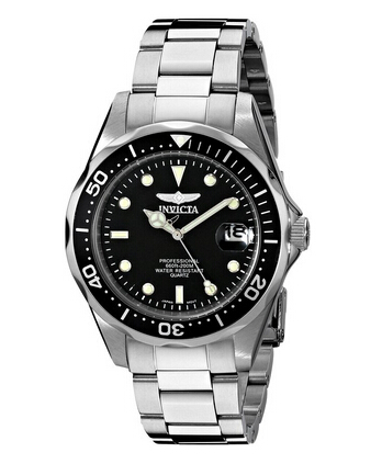 这款Invicta Men's 8932 Pro Diver Collection Silver-Tone Watch因维克塔男士石英腕表型号为:8932,属于Pro Diver系列,这款表采用一颗岛国制造的石英机芯驱动,保证了走时的精确性,不锈钢材质的表壳和表链看上去干练精致,搭配黑色的表盘则呈现一种内敛的气质,三点钟方向的小开窗,表镜上还贴心地加上了放大镜,更加一目了然地看日期,这款表的表壳直径为39mm,200米的防水足以做一块潜水表了!