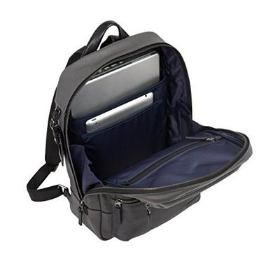 Tumi 塔米 Mission Bryant 皮质双肩背包,是商务系列的一款,背包的设计风格比较简约,用料非常扎实。它的材质是全粒面牛皮,手感一流,结实耐用。ow。内置多个隔层,可放置笔电、平板、以及文件档案等日常办公用品。外面还有两个上下式设计的小口袋,可收纳小物品,也方便归类。包的内部有 笔记本电脑夹层和单独的平板电脑夹层,非常实用!背包的肩带很宽,也是皮质的,背起来舒适度很不错。