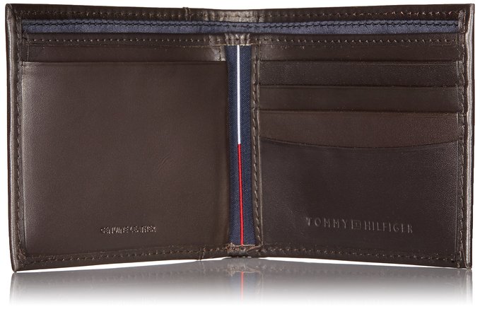Tommy Hilfiger Men's Cambridge 汤米希尔费格男士真皮钱包,采用100%优质牛皮制成,皮质细腻柔软,手感很好。纹理自然,结实耐用。正面嵌有汤米家LOGO,内含9个卡位卡槽,独立皮革ID窗口,两个大钞位,还有可拆卸的额外的储物空间,据实测,可放十张毛爷爷外加一些零钱,不会露头,外出带这么多钱还是够的。搭配Tommy的经典LOGO,简单低调但不低端。