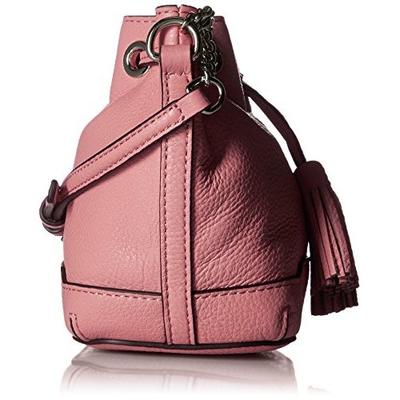 这款 瑞贝卡·明可弗 Rebecca Minkoff Micro Lexi Cross-Body Bag 女士单肩手提包,这款女士单肩包,大热的水桶包包身造型,牛皮材质,质感柔软,链条和流苏的设计比较时尚,紧凑的设体型可以放置不少东西,磁扣开合,尺寸为15.24*13.97厘米,比较小巧玲珑,适合逛街装些随身小物,绝对提升气场与气质的必备包款。
