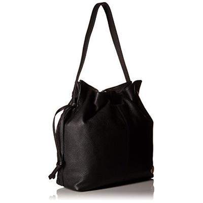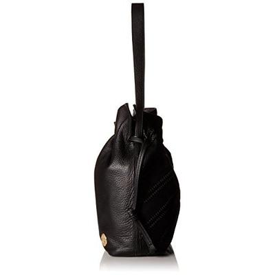 Vince Camuto Nella Hobo Shoulder Bag 女士真皮单肩包采用真皮制作,独特的包面设计,并内附有一个小拉链小包,大包采用了经典水桶包造型,抽绳开合,黑色百搭款,可单肩可携挎,适合多场合携带。