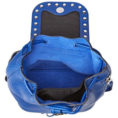 Rebecca Minkoff Micro Unlined Fashion Backpack 女士双肩背包,采用100%荔枝纹牛皮材质制成,经典抽绳+翻盖开阖,翻盖处圆形铆钉设计,时尚又有特色;侧面有拉链,以方便取物,并缀有招牌皮质流苏,增添柔美感。尺寸约为17.8*22.9cm。