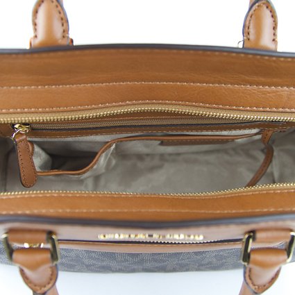 Michael Kors Selma Zip大号真皮手提耳朵包 ,是MK最热门的款式之一,真皮材质拼接,质感非常不错,MK印花。包身尺寸为33.5*26*15mm,内部空间相当大,前置拉链小袋,零零碎碎的什么小玩意都够放了,而且是绝对提升气场与气质的必备包款。
