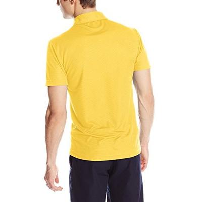 鳄鱼 Lacoste Men's Golf Short Sleeve Textured Polo Shirt 男士休闲polo衫,这款法国鳄鱼Lacoste Textured 男高尔夫球Polo衫,领襟较大,3纽扣,鳄鱼用的都是贝母扣;面料是100%聚酯纤维,透气吸汗,上身版型好,胸前有鳄鱼品牌Logo。