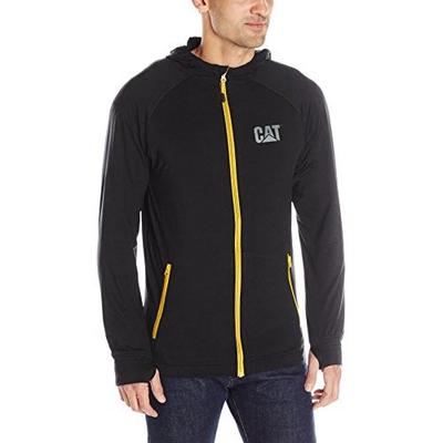 卡特彼勒 Caterpillar Men's Contour Zip Up Sweatshirt 男士休闲卫衣,标准版型,连帽设计,运动风;面料是100%纯棉,上身舒适,袖口带拇指扣,大拇指可以穿过拇指扣漏在外面,而手掌可以包在袖子里保暖,胸口有品牌Logo,适合日常穿着。
