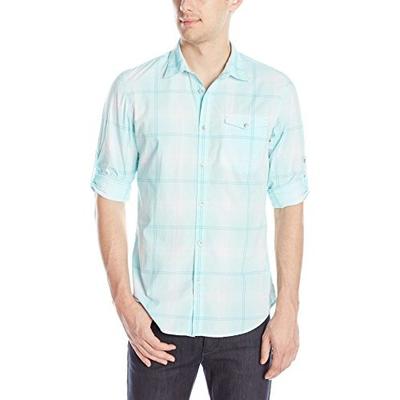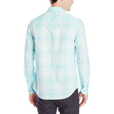 Calvin Klein Jeans是CK的副牌,主做牛仔服装,在价位上和CK正牌差不多,定位比李维斯、LEE略高,舒适性也略好,但还不如7 For All Mankind、迪赛这种高档时装品牌。这款Calvin Klein Jeans Men's Accelerated Plaid Shirt男子休闲格子衬衫,面料是100%纯棉,柔软舒适,肩膀有袖口,热时可挽起当短袖穿;大线条格子花纹,搭配清淡的薄荷绿,整体看起来很是素雅,适合春夏季节休闲时穿着。