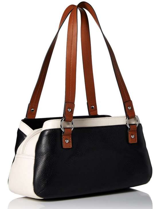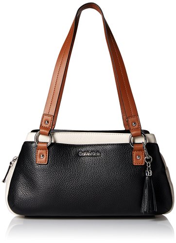 Calvin Klein Pebble女士卵石纹真皮单肩包,尺寸为17×32厘米,肩带长26厘米,优质卵石纹皮革制作,黑白撞色主体配以亮棕色皮肩带,加上右侧流苏设计,时尚雅致适合多年龄段女性,尺寸约32*11*15cm,不算大,正好适合春夏使用。