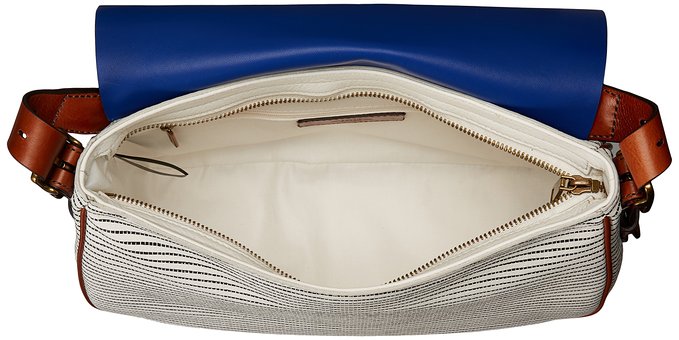 这款FOSSIL Harper Large 女士斜挎包,采用100%真皮材质,拉链开合搭配翻盖设计更加安全。黑白条纹款包身加上蓝色翻盖,清新海军风扑面而来。绳索肩带十分别致,整体尺寸约为34.3*11.4*24cm。白色款则十分简约。