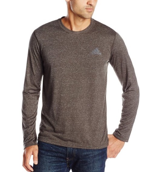 这是adidas 阿迪达斯 Ultimate 男士运动长袖T恤,采用100%涤纶构成,贴身穿着舒适度不错,搭配独家CLIMALITE技术,保证透气性与干爽性,能够及时将汗水排出,不给运动带来负担,外观方面,经典圆领款式,胸口处点缀品牌logo,边缘处缝线固定,运动时可以穿,平常搭配也不赖。