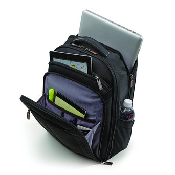 这款 Samsonite 新秀丽 Syndicate Checkpoint Friendly Laptop Backpack 笔记本电脑双肩背包,结实耐用,可以放下15.6吋笔记本电脑,还有放平板电脑的专用口袋。加厚顶部还有配提手。加厚的肩带增加舒适感。多个口袋非常实用。顶部设有厚实 Smartstrap 提手,拎起来不勒手。采用简单的纯色设计,时尚美观。可满足商务人士各种收纳需求。适合IT通勤人群使用。