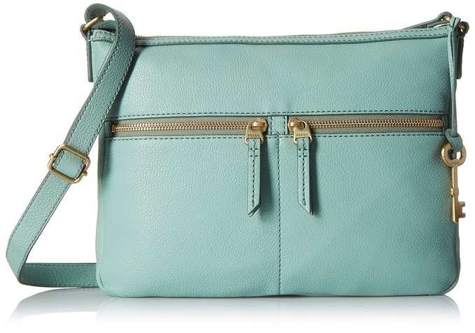 这款 Fossil Erin 女士挎包,采用真皮材质,质感非常不错,结实耐磨。款式简单,颜色清新大方,包包外侧有两个拉链袋,收纳性足够,细节处有一把金色的钥匙挂件,细节处有Fossil的字母标识,彰显品牌魅力,包包尺寸13.4 x 8.4 x 3 英寸。