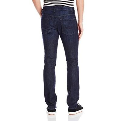 7 For All Mankind Slimmy 男式 牛仔裤 身版型,Straight直筒款式,直筒是牛仔裤诞生的第一款、也是男子牛仔裤销量最高的裤型,面料是98%棉混2%弹性纤维,具有微弹性,上身舒适不绷;五口袋设计,大腿有猫须,膝盖有轻微磨白效果;产地是墨西哥,7 For All Mankind现只有少数高端线保持美国原产,主流款式都在墨西哥产。