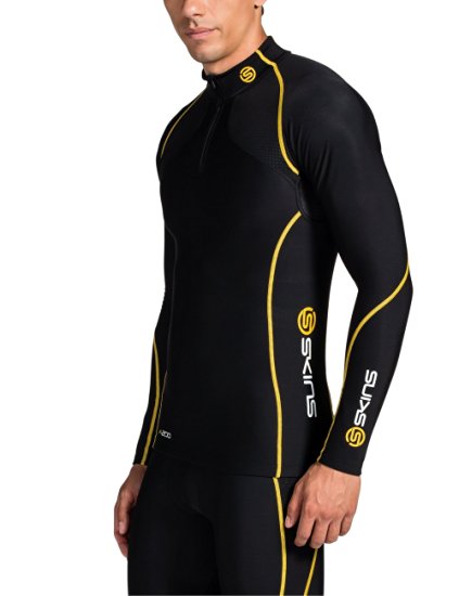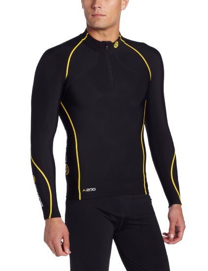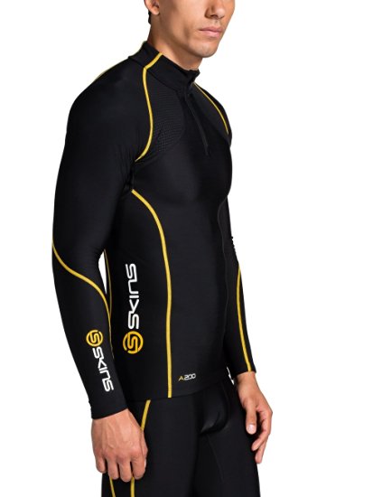 这款思金斯Skins A200 Men's Thermal Long Sleeve Compression Top with Zip Mock Neck 男式长袖梯度压缩衣,更强调综合性能,是一款日常生活也可以穿着的运动内衣。腋下弹性网面,腰部硅胶条防滑设计,具备向肌肉提供更多氧气,加快除去乳酸,延迟疲劳感出现,肌肉支撑、透气快干、温度调节、防止异味等功能。