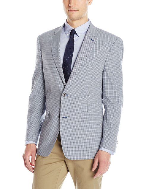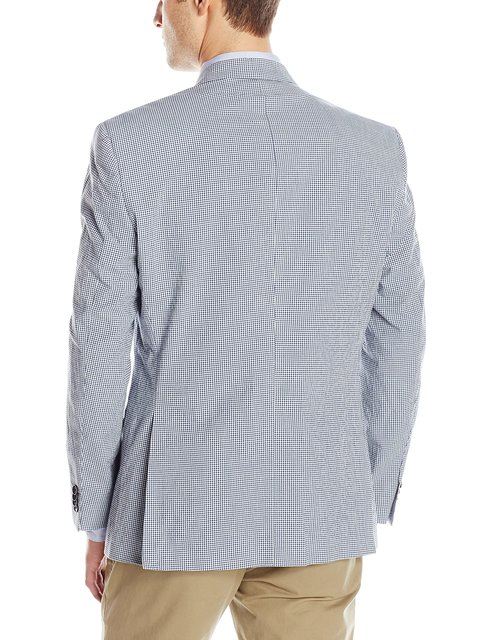 这款Tommy Hilfiger的Blue Mini Gingham男西装,是2016年夏季新款,越南产,修身款式;经典的2粒扣西服,款式设计上兼顾了大方与休闲,适合出席正式场合或者日常商务活动;面料是98%棉,混2%弹性纤维,上身舒适不绷,修身剪裁,肩部线条圆润饱满,上身效果好,注意只可干洗,打理的时候需要注意。