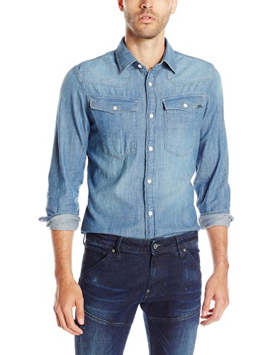 这款G-Star Raw 3301男士衬衫,面料是100%纯棉,透气性不错,穿着舒适,经典蓝色牛仔面料,翻领版型,款式简约大方,胸前是俩带扣口袋,既美观又实用。潮男必备款,秋季百搭必备单品,外穿或是内搭都很适合。