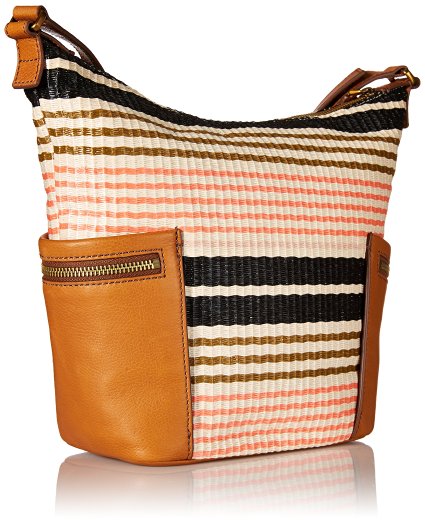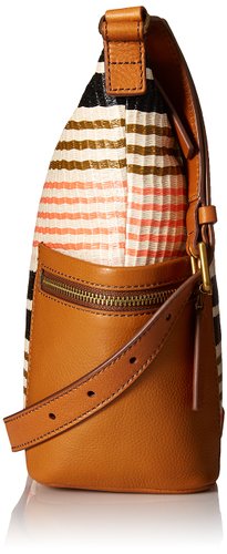 Fossil Emerson Small Hobo Shoulder Bag 化石 女士真皮斜挎包,采用真皮面料,顶部拉链开合,内部设有拉链袋+插袋,包身两侧带有拉链小袋,适合放置钥匙之类的小件物品。彩色条纹设计更加时尚个性。尺寸30.5×23.5cm,空间十分充足。