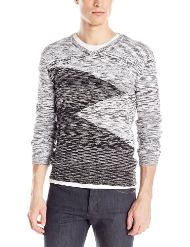 这件CK Cotton Boucle Parall 男款针织衫,经典V领设计,标准版型,面料较为厚实,采用100%纯棉,柔软亲肤,穿着舒适,衣面是灰黑两色的规律断点图案,款式好看,无论内搭、外穿,都很不错。