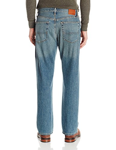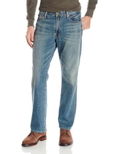 Lucky Brand男士牛仔裤,采用98%棉混纺弹性纤维面料,穿着柔软舒适且具有不错的弹性。直筒裁剪,简约大气。经典5袋设计。休闲风十足,风格百搭。非常适合日常休闲穿着。