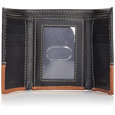这款添柏岚 Timberland Men's Hunter Trifold Wallet 男士真皮三折钱包,采用100%真皮材质,纺织物内衬,其高度为4英寸(10.16cm),可以很好的放入百元大钞。内设有6个信用卡槽、两个隐藏卡槽、2个大钞位以及1个透明证件口袋,整体简约实用。