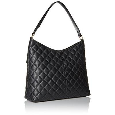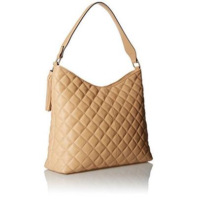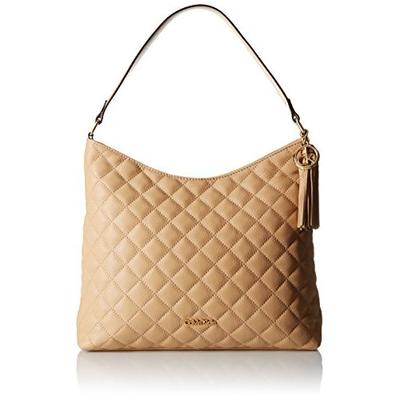 这款Calvin Klein Quilted Leather Hobo 女士真皮单肩包,采用优质真皮材质,菱格纹缝线装饰,正面下方低调LOGO,呼应肩带处的金属LOGO和流苏吊饰,顶部拉链开合,内里有单独的拉链壁包,简洁大方,尺寸约25.4*31.75cm。