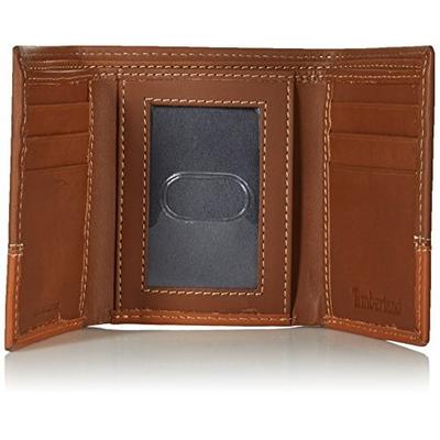 这款添柏岚 Timberland Hunter Trifold Wallet 男士真皮三折钱包,采用100%真皮材质,纺织物内衬,其高度为4英寸(10.16cm),可以很好的放入百元大钞。内设有6个信用卡槽、两个隐藏卡槽、2个大钞位以及1个透明证件口袋,整体简约实用。