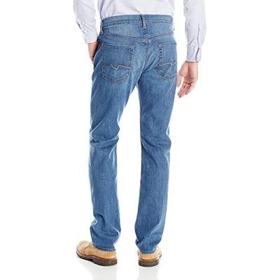 7 For All Mankind Men's Standard Classic Straight Leg Jeans In Menoh Mist 男士直筒牛仔裤,标准版型,Straight直筒款式,直筒是牛仔裤诞生的第一款、也是男子牛仔裤销量最高的裤型,面料是98%棉混2%弹性纤维,具有微弹性,上身舒适不绷;五口袋设计,大腿有猫须,膝盖有磨白,适合年轻人;产地是墨西哥,7 For All Mankind现只有少数高端线保持美国原产,主流款式都在墨西哥产。