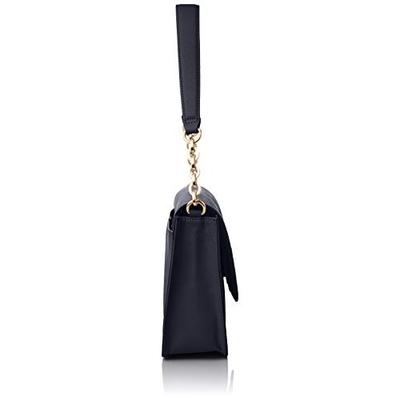 Tommy Hilfiger Clara Flap Shoulder Bag 女士真皮单肩包,采用印釉十字纹皮革并镶边,表面有精致的交叉纹理,硬挺有型并且不易划伤,皮革+五金结合的肩带,时髦有型。内置多功能口袋和拉链口袋,包身前TH标志,尺寸30*22*8.5cm,容量适中,出街或通勤都适用。