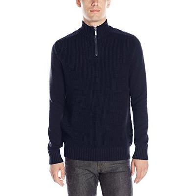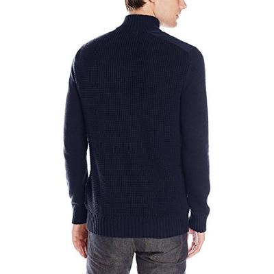 这款是Kenneth Cole的 男针织衫,半拉链立领款,采用60%棉,混%40腈纶,蓬松柔软,穿起来保暖舒适;衣面是网状针织格纹,双肩处是皮革拼接,增强了耐磨性。造型简约大方,可春秋季节直接外穿,或冬季作为保暖层。