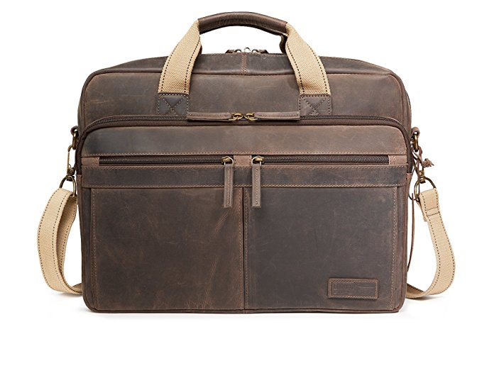 这款NATIONAL GEOGRAPHIC 国家地理 真皮手提包,采用质感做旧的疯马皮真皮材质,尺寸为40.5*30.5*11.5厘米,最大可放下15.6英寸笔记本电脑,前置多个拉链口袋,可放置笔,手机,卡片等,主舱内部含有一个可拆卸笔记本内胆袋,外部靠背处磁性口袋,可放置报纸杂志方便取阅,皮质肩带软垫和提手,细节品质都非常优秀。
