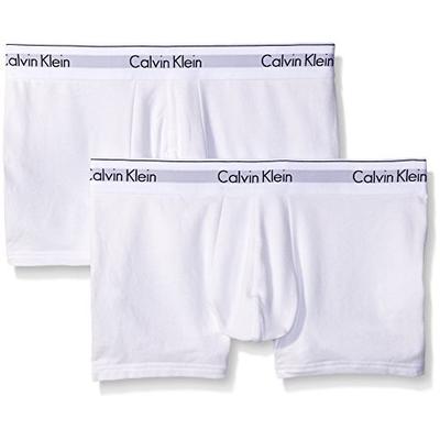 卡尔文克莱恩 Calvin Klein Men's 2 Pack Modern Cotton Stretch Trunk 男士平角内裤 2条装,CK的内衣,特别是CK内裤,种类齐全价格合理,不论是基础款纯棉内裤、舒适的莫代尔内裤、亮骚的性感内裤、还是弹性好还速干的运动内裤,产品线超齐全,价格也合理。Modern Cotton翻译成中文是现代棉系列,是2016年CK最新的实用级内裤,性价比高,除了面料,款式设计和剪裁上都和高端款一样。这款CK 现代棉系列男平角内裤,低腰短款,面料是95%棉混合5%弹性纤维,有蛋囊,柔软舒适,具有弹性,上身舒适不紧绷,上身版型较好。