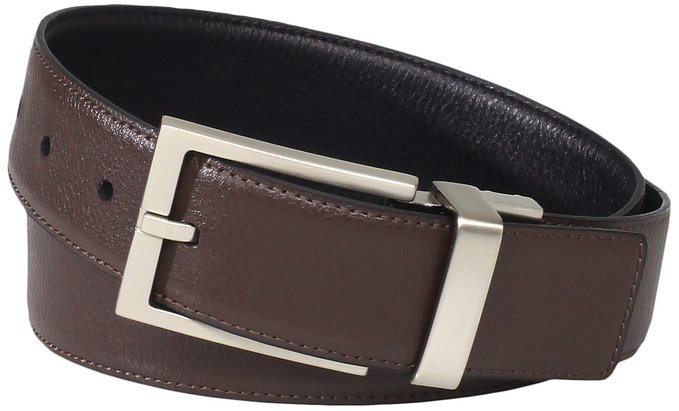 这款Calvin Klein Reversible Leather Belt 男士双面皮带,属于CK主标的产品,国内专柜里CK主标的价格都贵的离谱,海淘则划算实惠了不少,这款皮带采用100%真皮材质,皮革富有质感,两侧压线整齐,体现出了做工的精致,质量有保证,皮带孔圆滑质感很好,特别之处在于搭扣可以翻转,一个皮带两种穿法,颜色款式属于百搭款,且没有年龄层次要求,搭配也不费劲,正装牛仔裤都很适合哟,总体上来说这是一款款式简洁不花哨的皮带,目前码数很全,建议比自己腰围大2-4码进行购买,送男友送爸爸都非常适合!