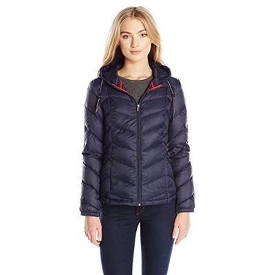 每日神价格 尺码齐全!汤米希尔费格Tommy Hilfiger 女士修身可收纳羽绒服带兜帽 $61.99 (到手约¥478.72)