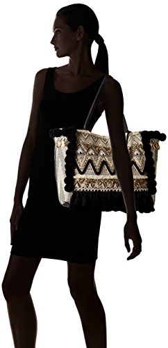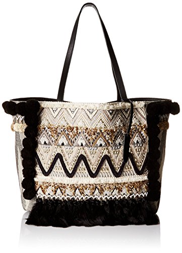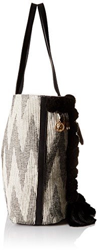 这款Rebecca Minkoff Taj Tote Shoulder Bag 女士刺绣单肩包,正面采用了大面积的刺绣面料,搭配周围的黑色毛球装饰,设计感十足,吸睛指数爆表。搭配背面和侧面的条纹帆布材质,整体设计大胆时尚。包包底部采用真皮材质,结实耐磨。包身尺寸约为44.5*33.7cm,容量充足,能轻松装下A4大小的文件。内设2个多功能贴袋和1个拉链内袋,可分开放置不同物品,方便拿取。